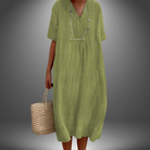 Šaty Federica spojují jednoduchost, ženskost a přirozený půvab. Díky výstřihu do V a splývavému střihu působí elegantně a svěže, zatímco čisté linie dodávají moderní vzhled vhodný pro denní i večerní příležitosti.