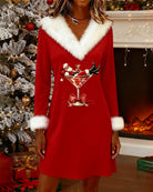 Adéla™ – Vánoční šaty s výstřihem do V a hřejivým lemováním