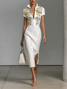 Elena | Vyšívané Midi Šaty S Výstřihem Do V