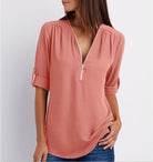 Jacquette - Dámský top s polo zipem a ohrnutými rukávy