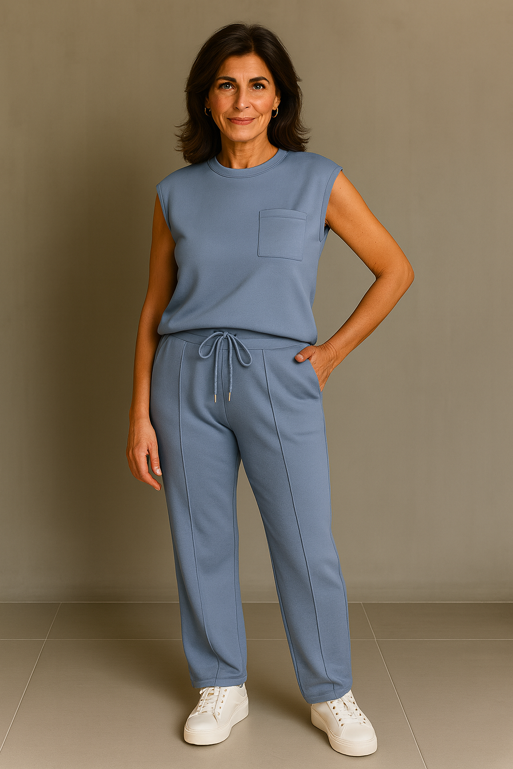 Dvoudílná sada Kaiya přináší jednoduchý, ale sofistikovaný vzhled pro všední dny i chvíle odpočinku. Lehký střih a jemné detaily vytvářejí přirozený a ležérní styl, který se hodí pro relax doma i nenucené vycházky ven.