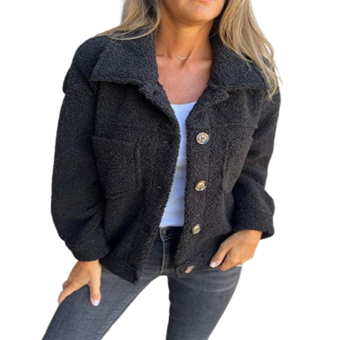 Laverinne – stylová pohodlná bunda je dokonalým spojením měkkosti, tepla a elegance. Díky příjemnému plyšovému materiálu ti zaručí maximální pohodlí i v chladnějším počasí, zatímco moderní střih a detaily s knoflíky dodají tvému outfitu trendy vzhled. Ideální na každodenní nošení, procházky nebo neformální setkání s přáteli.