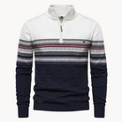 Přijměte kombinaci klasické elegance a útulného tepla s naším pulovrem Soho s zipem. Dvoubarevný alpský vzor svetrů, spolu s jemnými detaily pletení, dodává vašemu zimnímu šatníku nádech sofistikovanosti. S nastavitelným čtvrtzipem pro osobní pohodlí je tento robustní a pohodlný kousek nezbytným doplňkem vaší kolekce. Slibuje, že vás udrží pohodlně a stylově, což ho činí ideálním pro jakoukoli příležitost během sezóny.