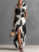 Evelisse | Geometrické Maxi Košilové Šaty S Límcem